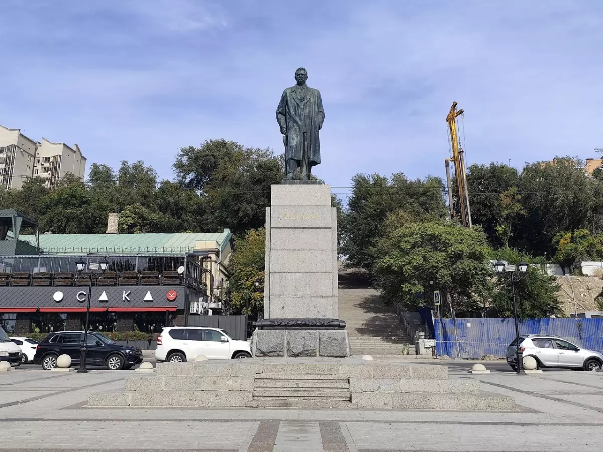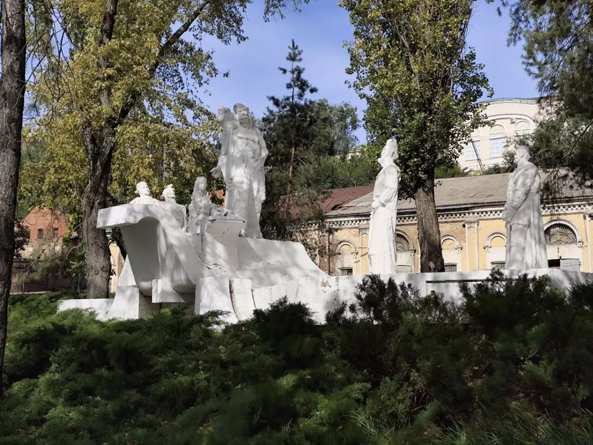 С памятником связана интересная история. Им заменили памятник Сталину в 1961 году, а чтобы не вызывать волнений, работы провели ночью. Никаких оповещений и предупреждений об этом не было. В первое время говорили, что это Сталин «постарел» за ночь и начал опираться на трость.
