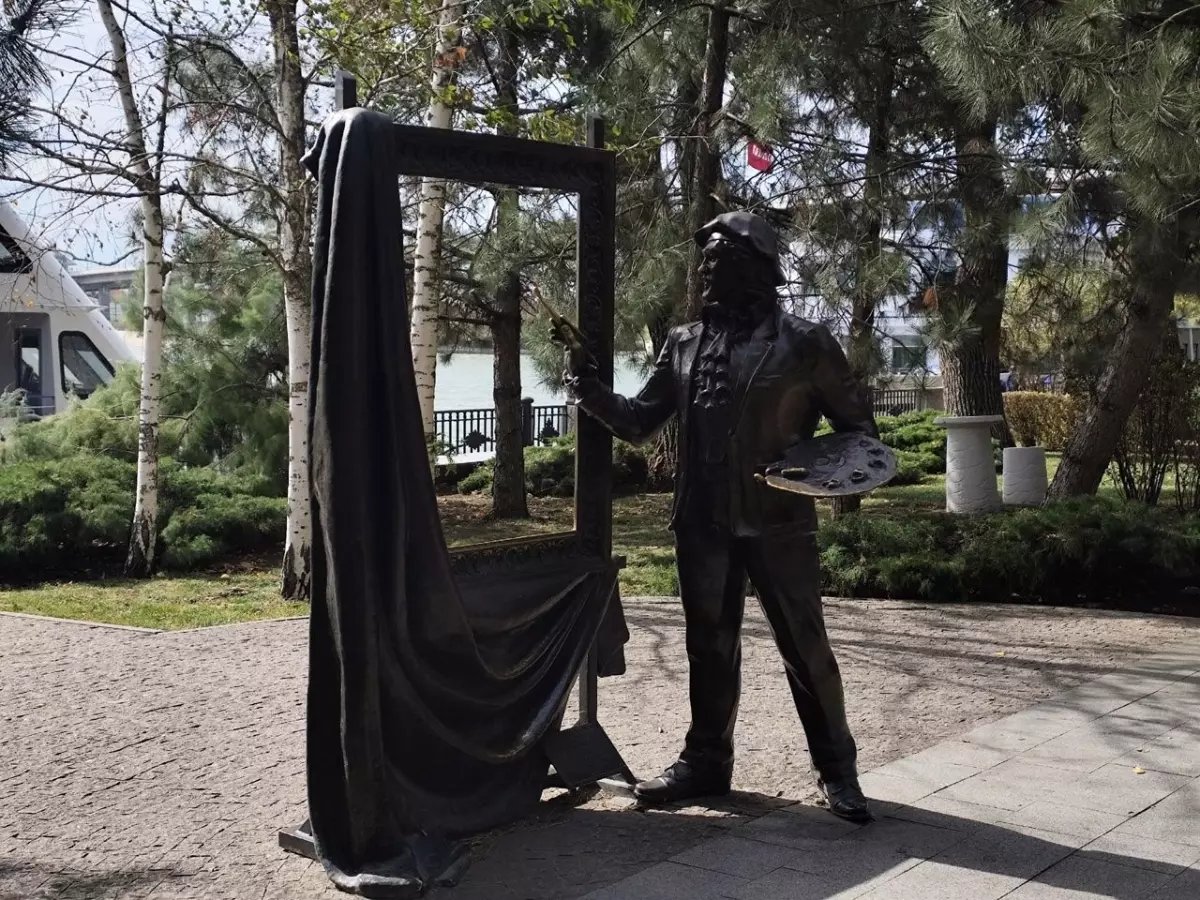 Зато создатель «Художника» известен — Олег Кукушкин. Его задумка с пустым холстом, на котором творит художник, воплощается сразу двумя способами. Во-первых, в разное время года и суток на картине как бы воплощается разный сюжет. А во-вторых — когда встаешь в раму, сам становишься изображаемым произведением искусства.