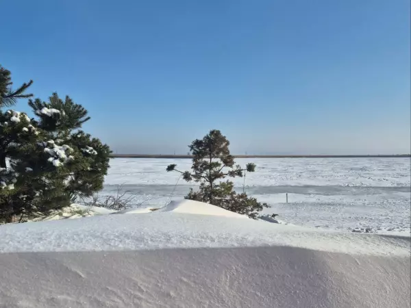 Берега почти исчезли, и водоём слился с окружающей природой. Место стало больше похоже на заснеженное поле, чем на озеро.