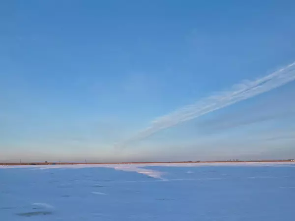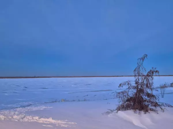 Соленое озеро под Батайском зимой 2026 года стало снежным полем. Местные жители вышли на прогулку по берегу водоема и удивились непривычному пейзажу.
