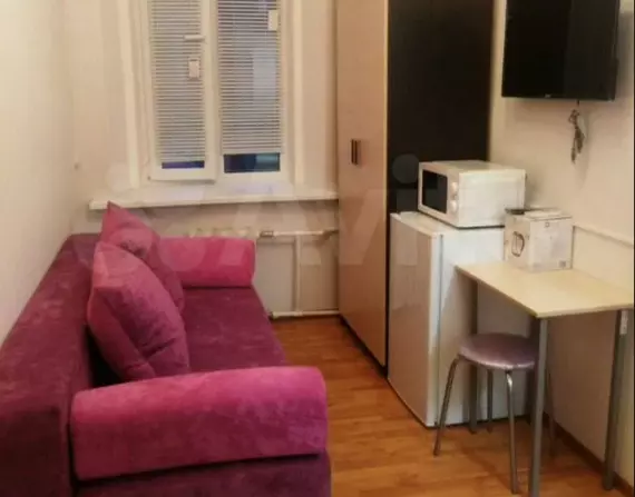 Вариант в 11 квадратных метров можно приобрести за 1 миллион 990 тысяч. Он находится в Ленинском районе на улице Обороны. Из плюсов — рядом Центральный рынок и остановка. Жилая площадь там составляет 7 квадратных метров, а служащий спальным местом диван не разложить, потому что напротив находится шкаф.