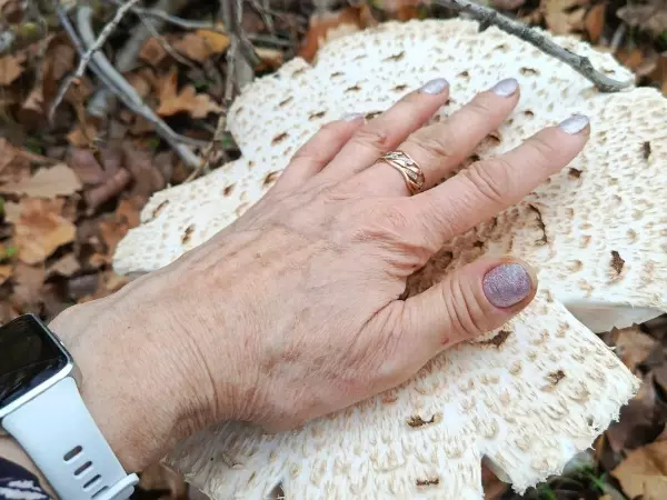 Также у съедобного зонтика на ножке обязательно есть кольцо, которое легко двигается. А его рисунок можно свободно счистить ногтем. Помимо этого, отличительной чертой съедобных грибов является светлая пластинка.