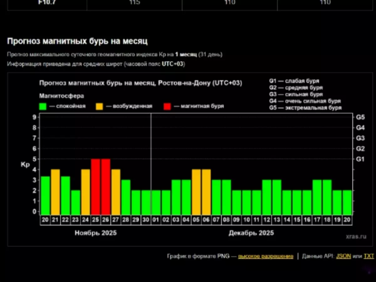 Ближайшие магнитные бури прогнозируются 25 и 26 ноября.