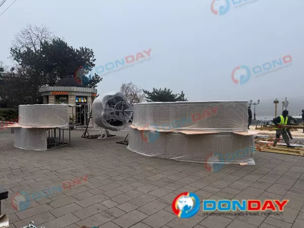 Подготовительные работы уже вовсю идут на набережной. Рядом с пешеходным фонтаном разместили детали будущего сооружения. Рабочие принялись за установку большого подиума. Вероятно, вскоре на этом месте появится праздничная елка. Для безопасности жителей территорию огородили сигнальной лентой.