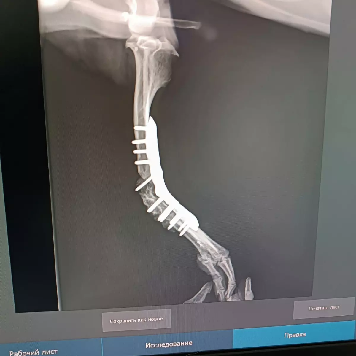 Однако срастания пластины с костями пока нет. Врачи сообщают, что это нормально — прошел всего лишь месяц. Чувствительность в лапке уже есть, но пес так и не опирается на нее. Кроме того, Мите нужна дорогостоящая операция на коленных чашечках и курс реабилитации. Стоимость только одной операции - порядка 140 тысяч рублей.