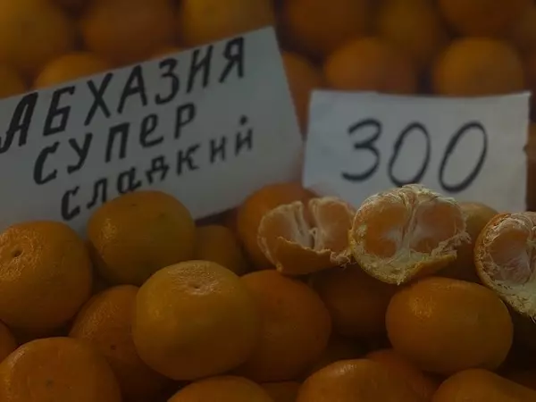 Конечно, первое, что бросается в глаза, — это мандарины и другие цитрусовые. Торговые прилавки буквально ломятся от количества оранжевого фрукта. Стоит отметить, что цена на цитрусовые упала почти в четыре раза перед Новым годом. Если в начале ноября абхазские мандарины можно было купить по 400 рублей, то теперь их стоимость варьируется от 100 до 300 рублей за кило.