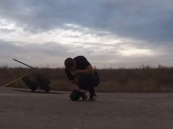 В центре дороги экстремал выложил гору из шин высотой около полутора метров. Конструкцию закрепили с помощью досок, чтобы Чеботарев смог залезть на нее. Каскадер стал на возвышенность, и на него на скорости поехала машина. Когда автомобиль приблизился к шинам, Евгений прыгнул вверх. В воздухе он попытался сделать сальто назад. Однако из-за слабого толчка мужчина начал падать головой вниз. Каскадер попытался смягчить удар о землю с помощью вытянутых вперед рук. В результате экстремал жестко стукнулся челюстью, упав на живот. Чеботарев не сразу смог встать. Он сел на корточки и согнулся от боли. На тревожный вопрос знакомого о самочувствии экстремал ответил, что все нормально.