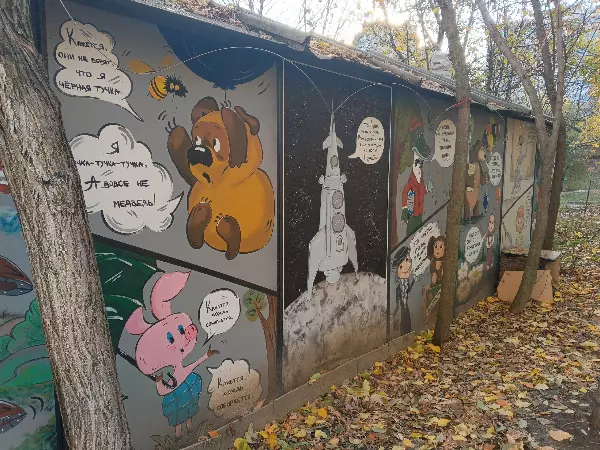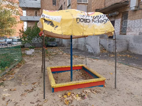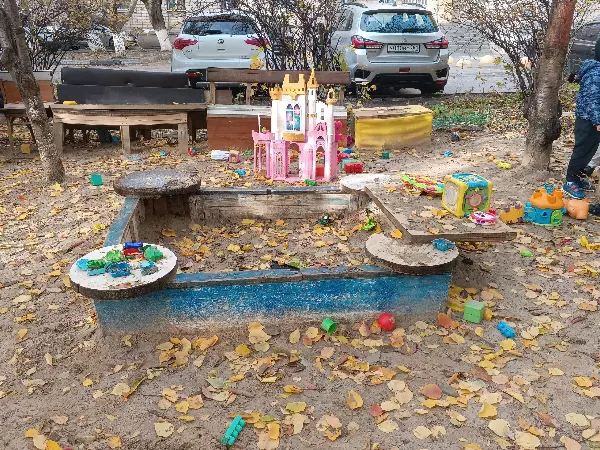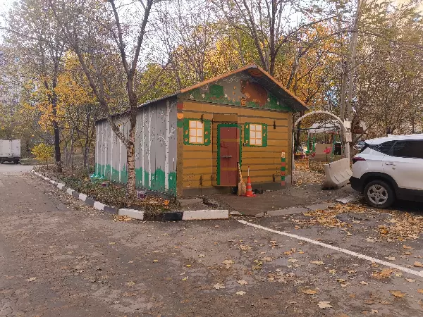 Он нашел запущенный участок у своего гаража на улице Беляева. Дедушка расчистил заросли, прилегающие мусорные баки огородил от площадки диким виноградом, а территорию засыпал песком. Постепенно пространство стали заполнять купленные на свои деньги качели с горками и сделанные собственноручно лавочки с арками на входе. А металлический короб гаража был раскрашен под избушку, в которой обитают знакомые многим мультипликационные персонажи.
