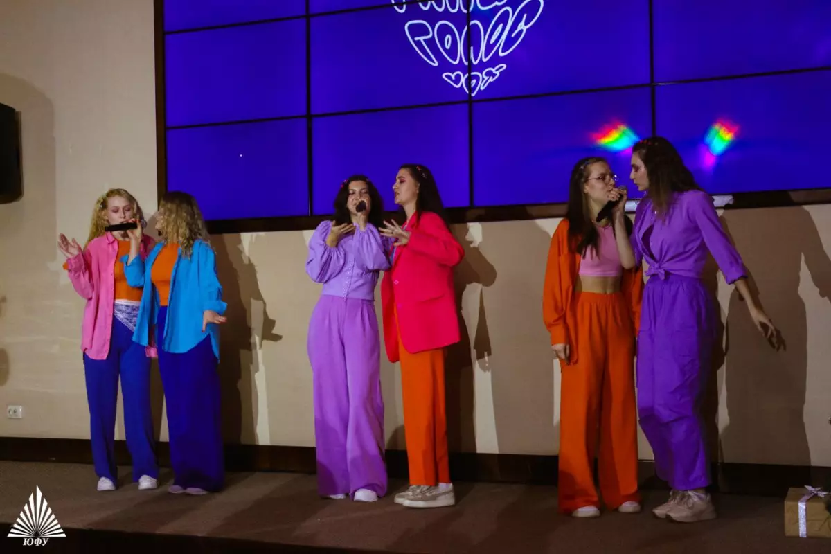 Церемония началась с регистрации гостей и музыкального сопровождения, после чего мероприятие открылось ярким творческим номером в исполнении Полины Зверевой, Иветты Газаровой и победительницы конкурса «Золотой голос ЮФУ – 2025» Ангелины Гаделиа.