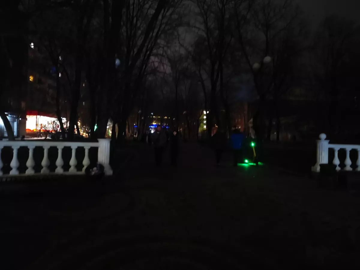 По их словам, фонари не горят, начиная с переулка Нахичеванского. Вся пешеходная зона до института Седова (Театральный проспект) в кромешной тьме. Освещают путь только витрины пары магазинов, едва работающая подсветка на единственном украшенном дереве и декорации в конце аллеи.
