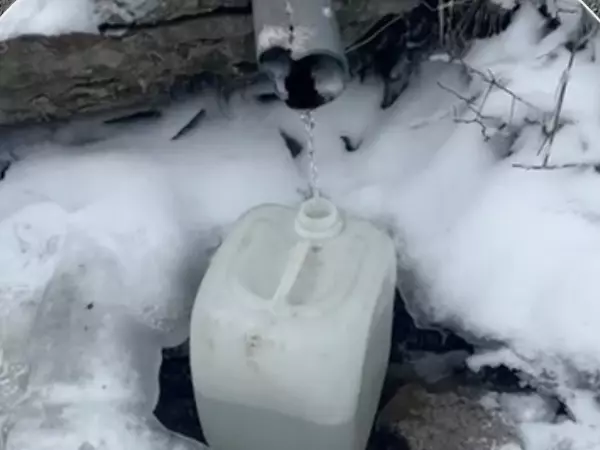 Так, в Гуково люди выбрали один из доступных источников воды - родник. Туда они ходят толпами. Там набирают чистую воду тоненькой струйкой. Из-за этого приходится стоять на морозе длительное время.