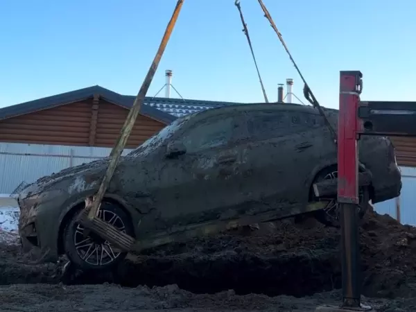 Ранее экстремал опустил в выкопанную яму иномарку и замуровал ее в земле. Автомобиль оказался залит бетонной смесью по крышу. Однако, не дождавшись полного высыхания бетона, машину стали доставать. С помощью крана легковушку вновь подняли в воздух. Естественно, после такого «грязевого купания» авто оказалось испачкано полностью. Интересно, что пользователи интернета пишут, что даже от такой грязи можно легко избавиться, сменив пленку на кузове.
