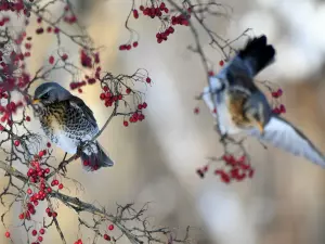 Дрозды-рябинники.