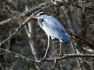 Цапля на ветвях сидит.