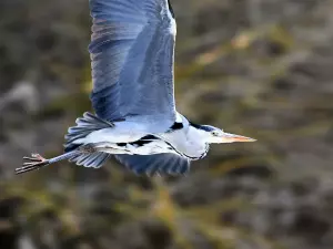 Серая цапля в полете.