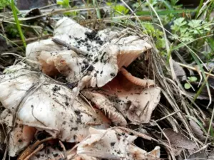 На полянках уже можно увидеть энтолому саундерса. У этого гриба беловатая или серовато-белая шляпка. Он имеет мучной запах и грибной вкус. Его уже нашли под Новочеркасском.