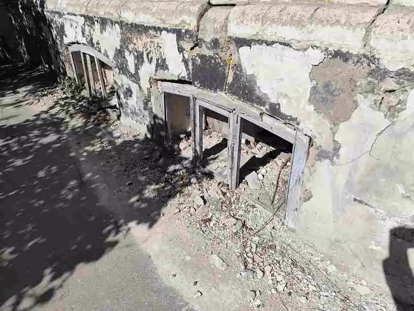 С тех пор состояние дома только ухудшалось. Крыша почти полностью разрушена. Окна выбиты: чтобы внутрь не лезли вандалы, проемы загородили досками. Из рам торчат осколки стекла. Тротуар рядом усыпан отвалившимися от фасада камнями и каменной крошкой, на декоративные элементы складывают мусор.