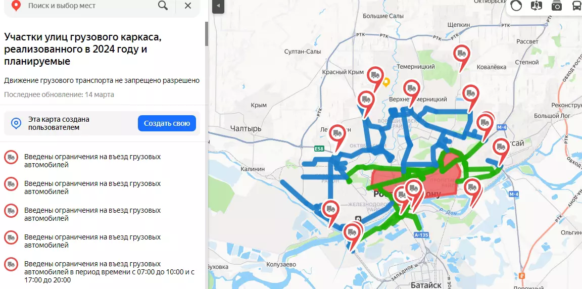 Отметим, что с лета 2024 года в донской столице постепенно вводится грузовой каркас — это система определенных правил, которые регламентируют время и маршруты движения большегрузов.