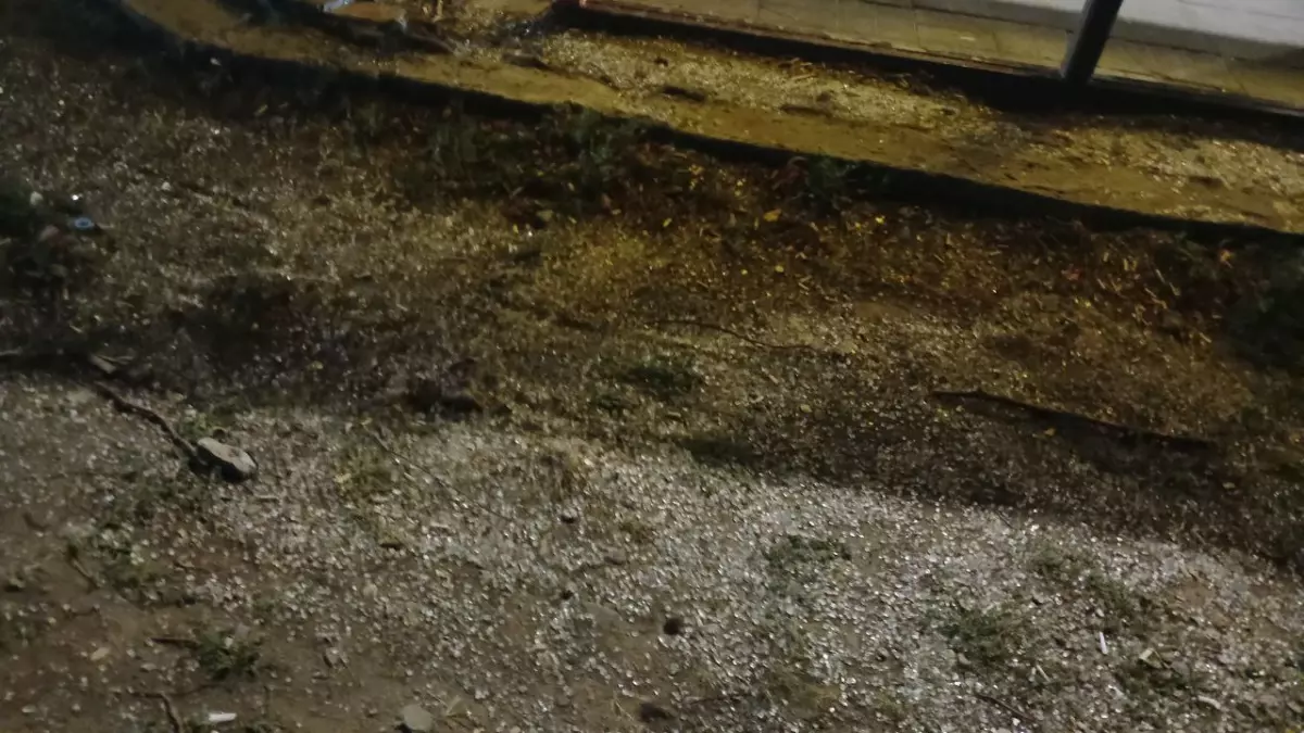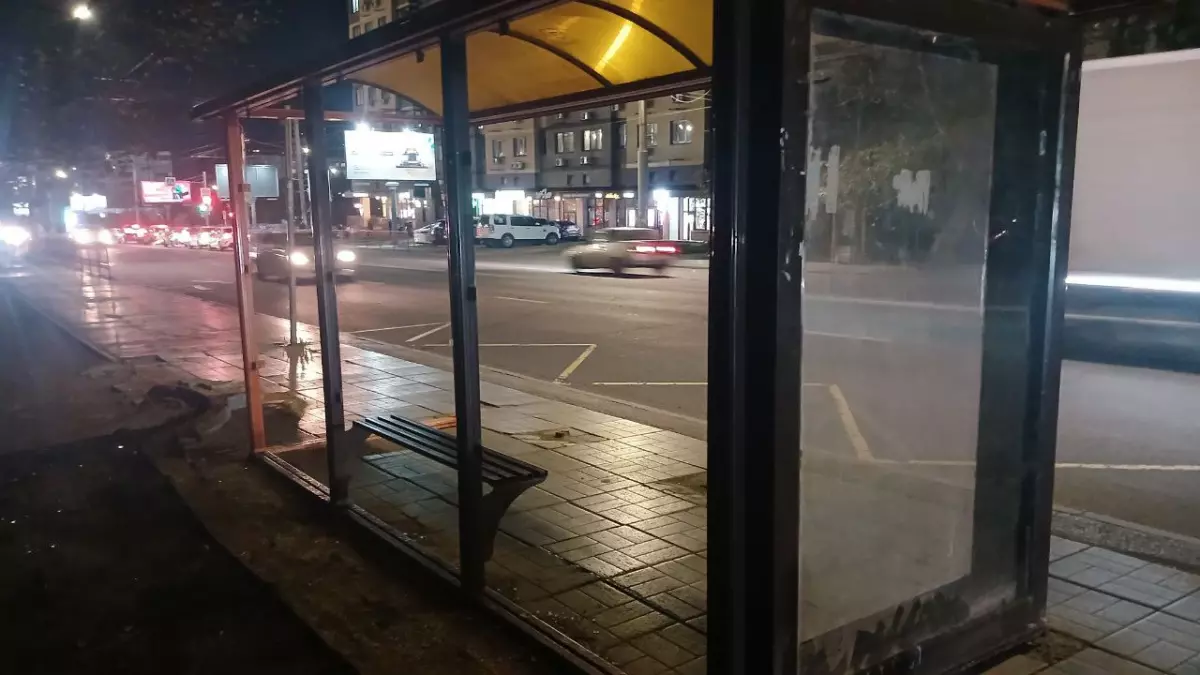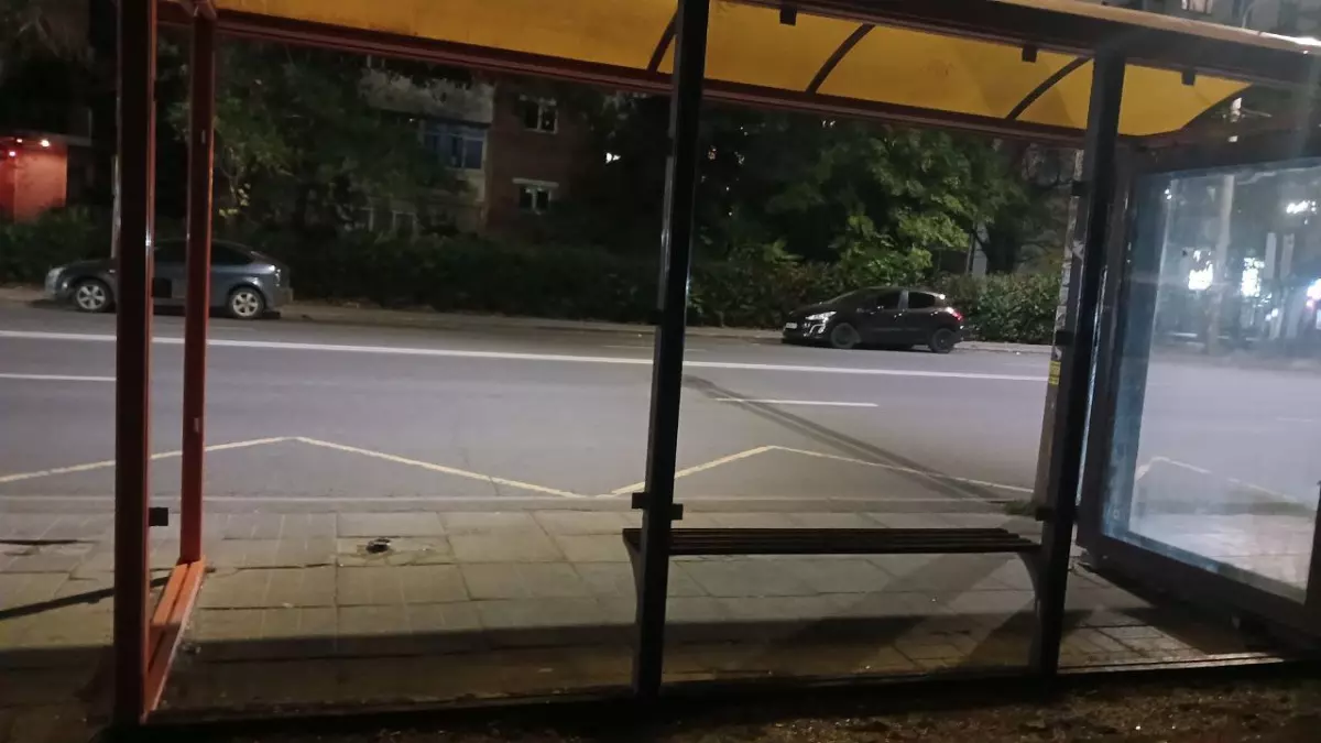 Стеклянные стены выбили со всех сторон, кроме одной. Уже второй год остановка стоит в таком состоянии. Стекла, разбросанные возле остановки, так никто и не убрал. Они стали частью местного ландшафта, которая красиво мерцает ночью в свете фонарей.