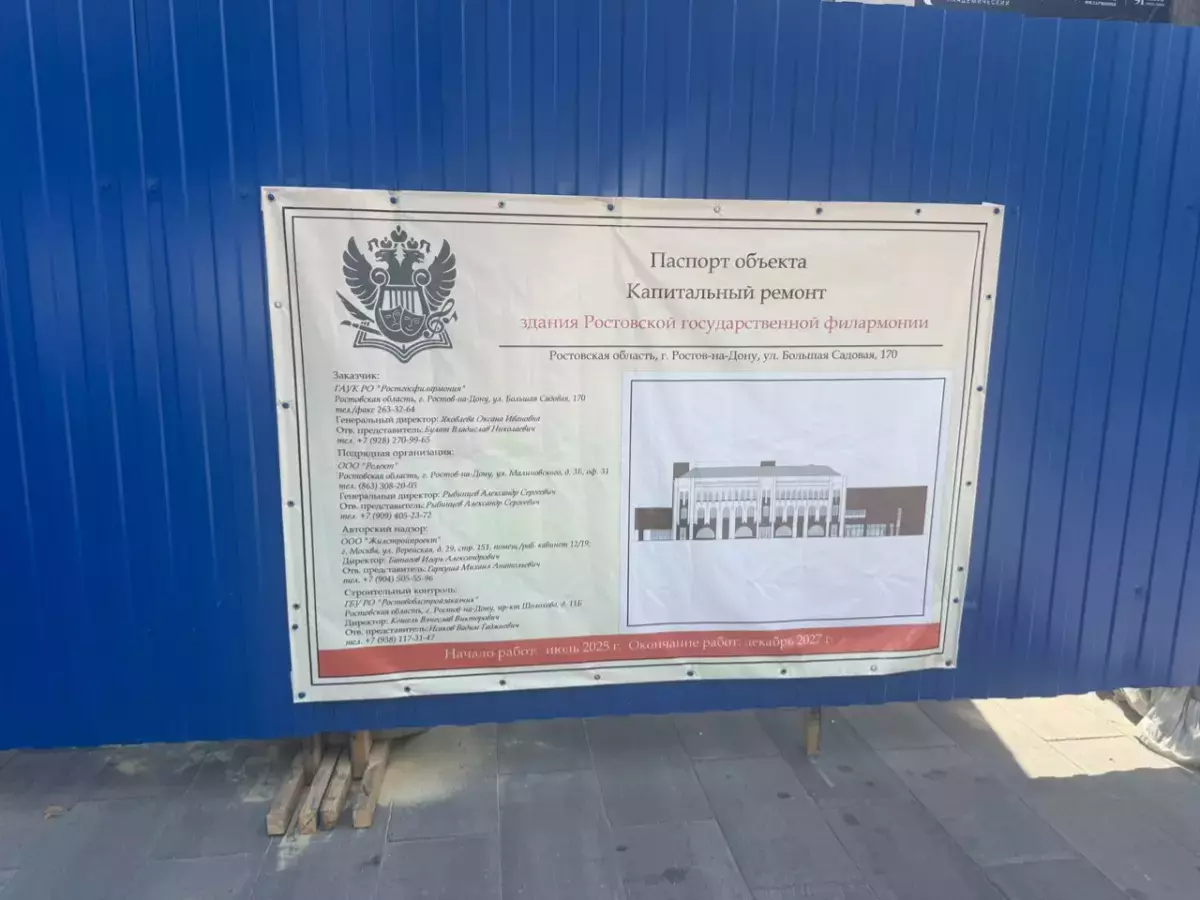 В августе этого года здание Ростовской филармонии огородили металлическим забором. Также на ограждении разместили паспорт объекта о предстоящих ремонтных работах. На эти цели было выделено 490,9 миллиона рублей. Завершить их планируют в 2027 году.На это событие остро отреагировали градозащитники. По их мнению, капитальный ремонт полностью изменит внешний вид здания, отчего филармония утратит свою аутентичность.