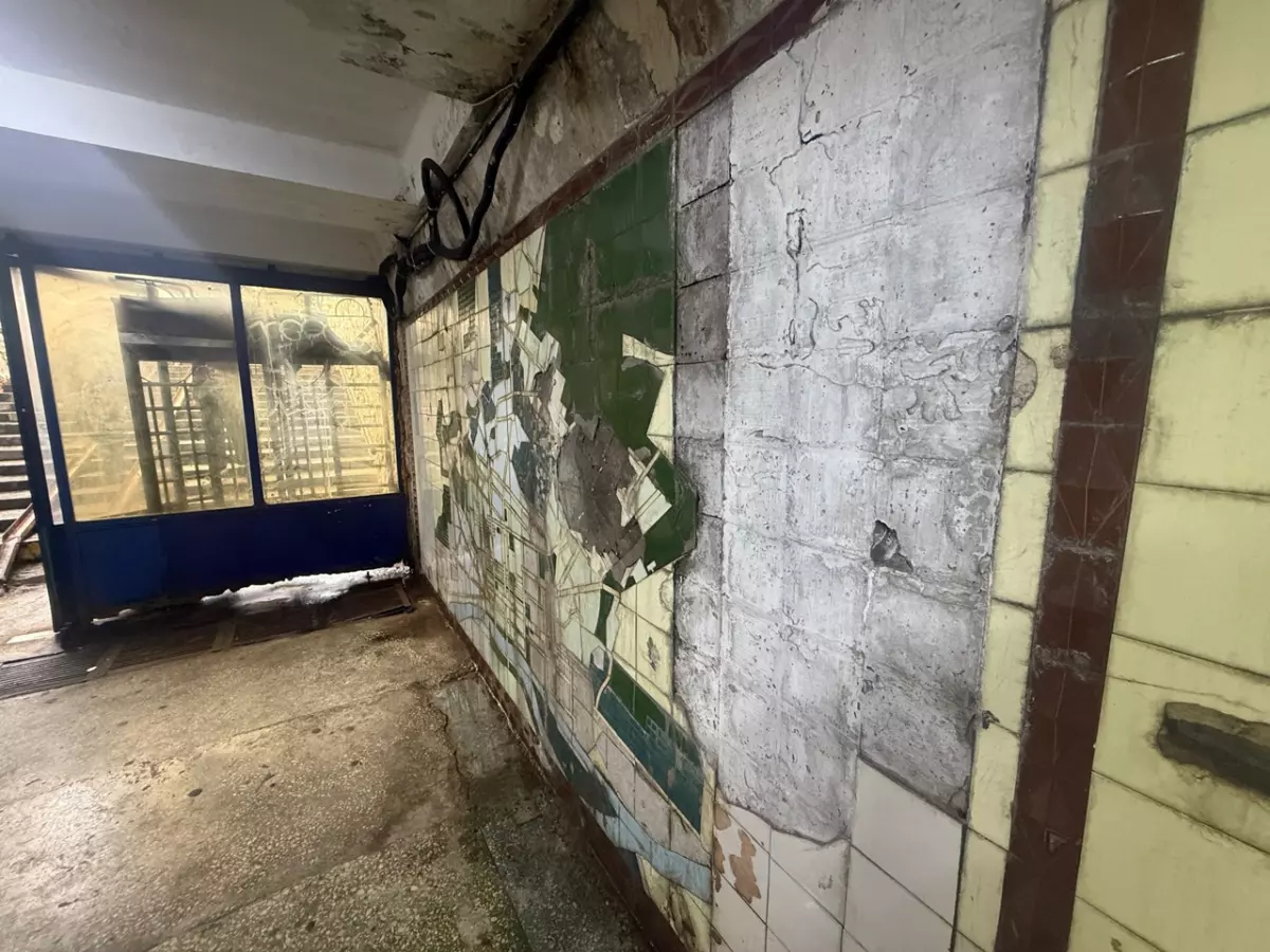 Мозаика из-за влажности начинает отваливаться от стен. Уже в некоторых местах видно, что плитка держится на скотче. Можно не быть экспертом, чтобы сделать заключение, что этому туннельному переходу требуется срочный ремонт.