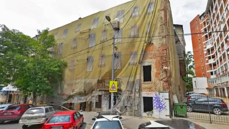 Раньше здесь стоял четырехэтажный дом, возведенный в первой половине ХХ века. В последние годы здание пришло в плачевное состояние, обветшало и стало непригодным для жилья. В итоге его признали аварийным. В 2021 году дом попал в список на снос, а в конце декабря того же года здание сравняли с землей. Процесс сноса дома стал не менее историческим, чем само здание. Так, во время работ при подъеме на третий этаж экскаватор свалился, из-за чего было повреждено перекрытие здания.