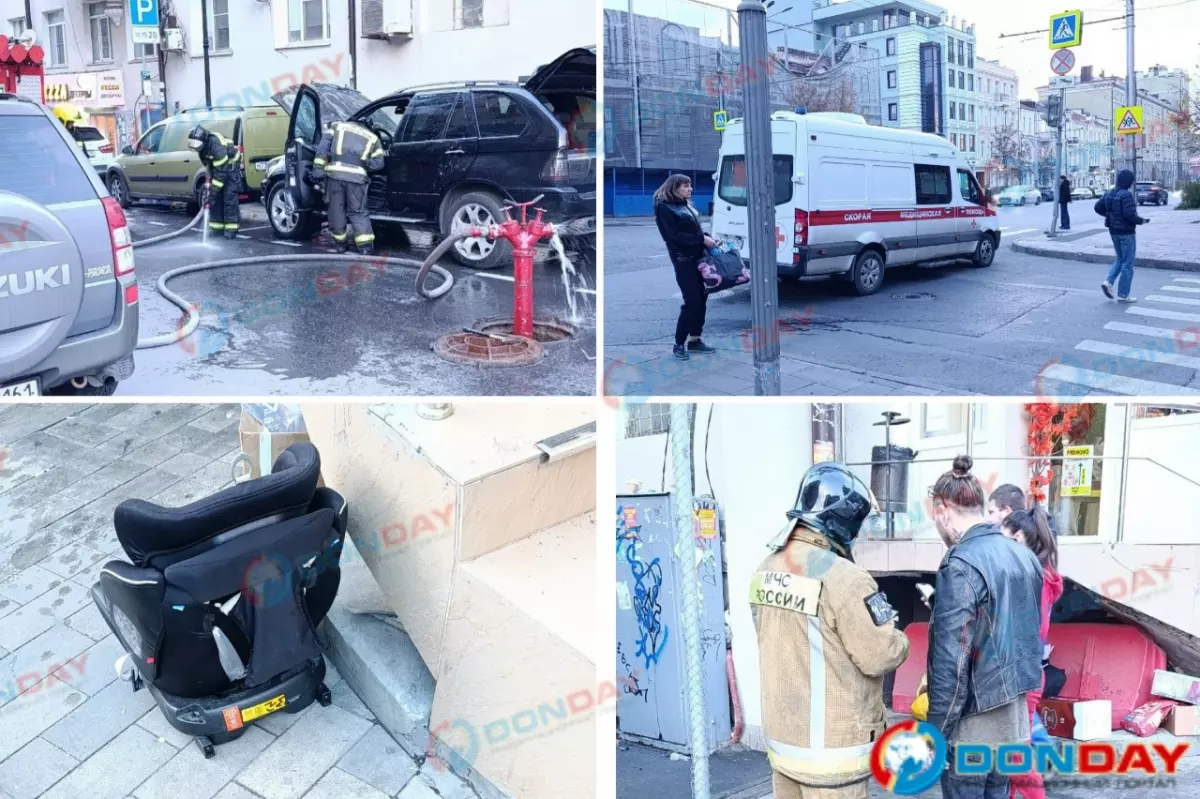 Машина загорелась из-за ДТП на перекрестке улицы Большой Садовой и переулка Братского. Об этом Donday сообщил очевидец 13 ноября, около 16:30.