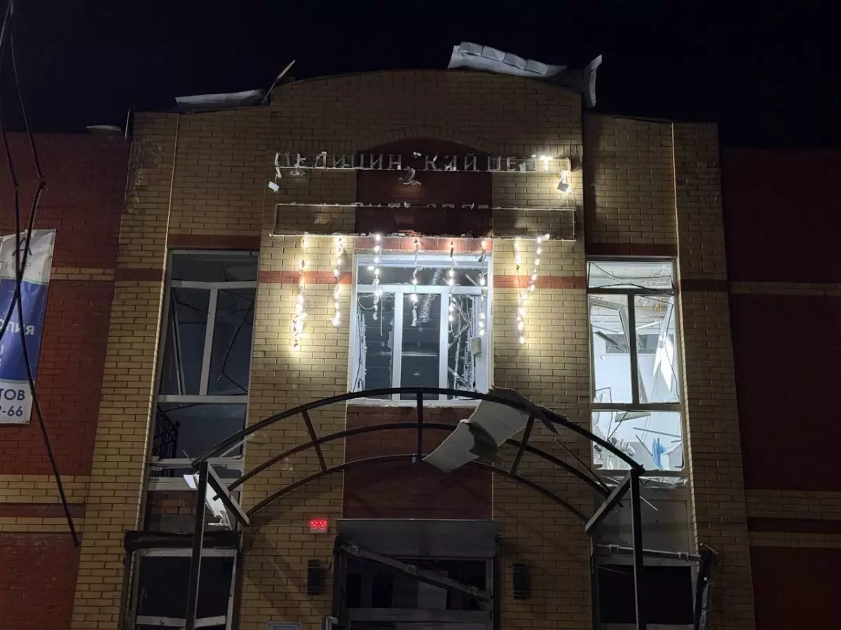 У высотного дома частично разрушилась стена на верхних этажах. Из здания было эвакуировано 20 жителей. Также из-за обломков БПЛА разбились стекла в домах по нескольким адресам на улице Октябрьская.