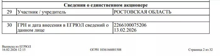 Ростовская область стала единственным владельцем футбольного клуба «Ростов». Об этом свидетельствуют свежие данные единого государственного реестра юридических лиц (ЕГРЮЛ).